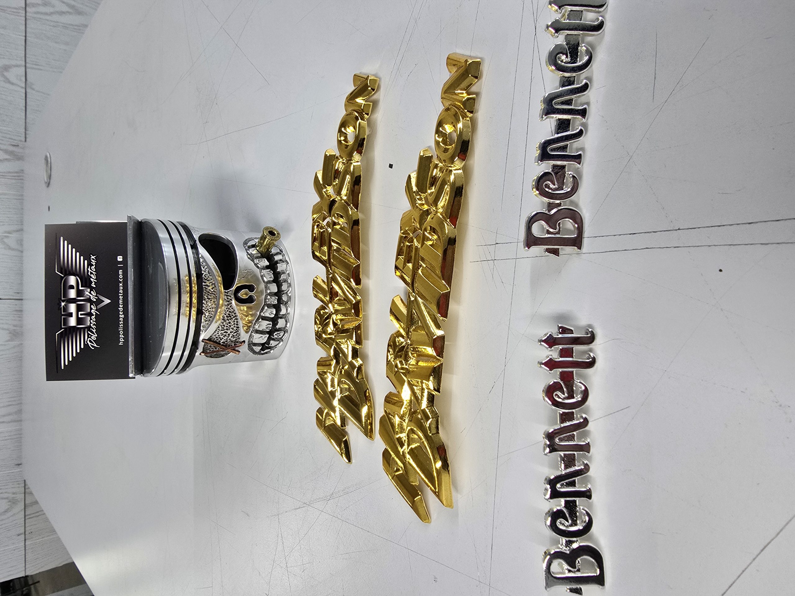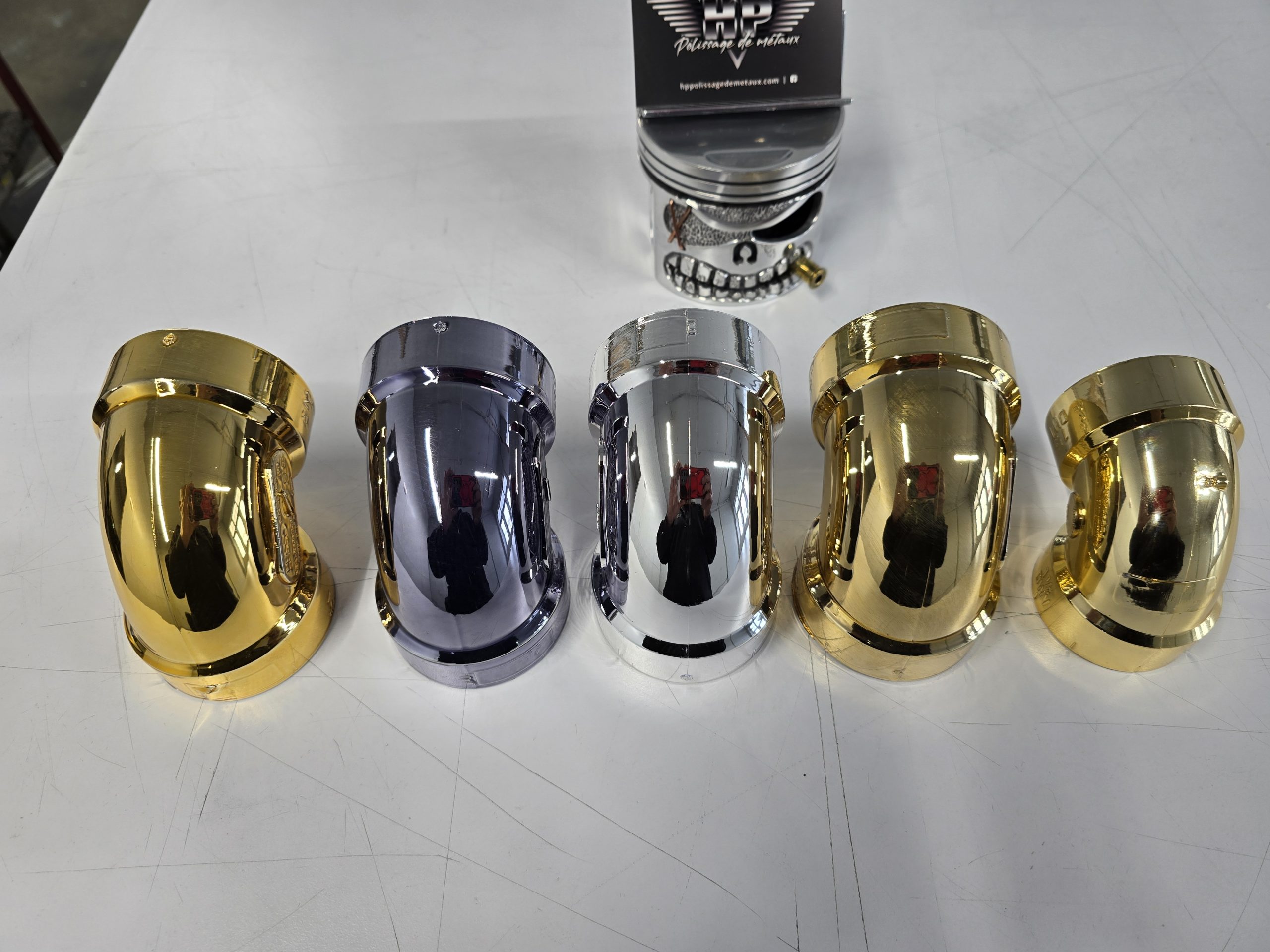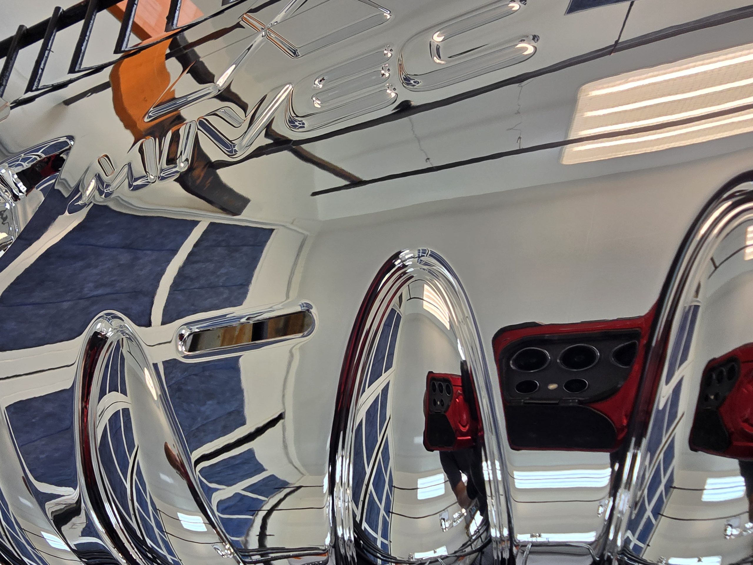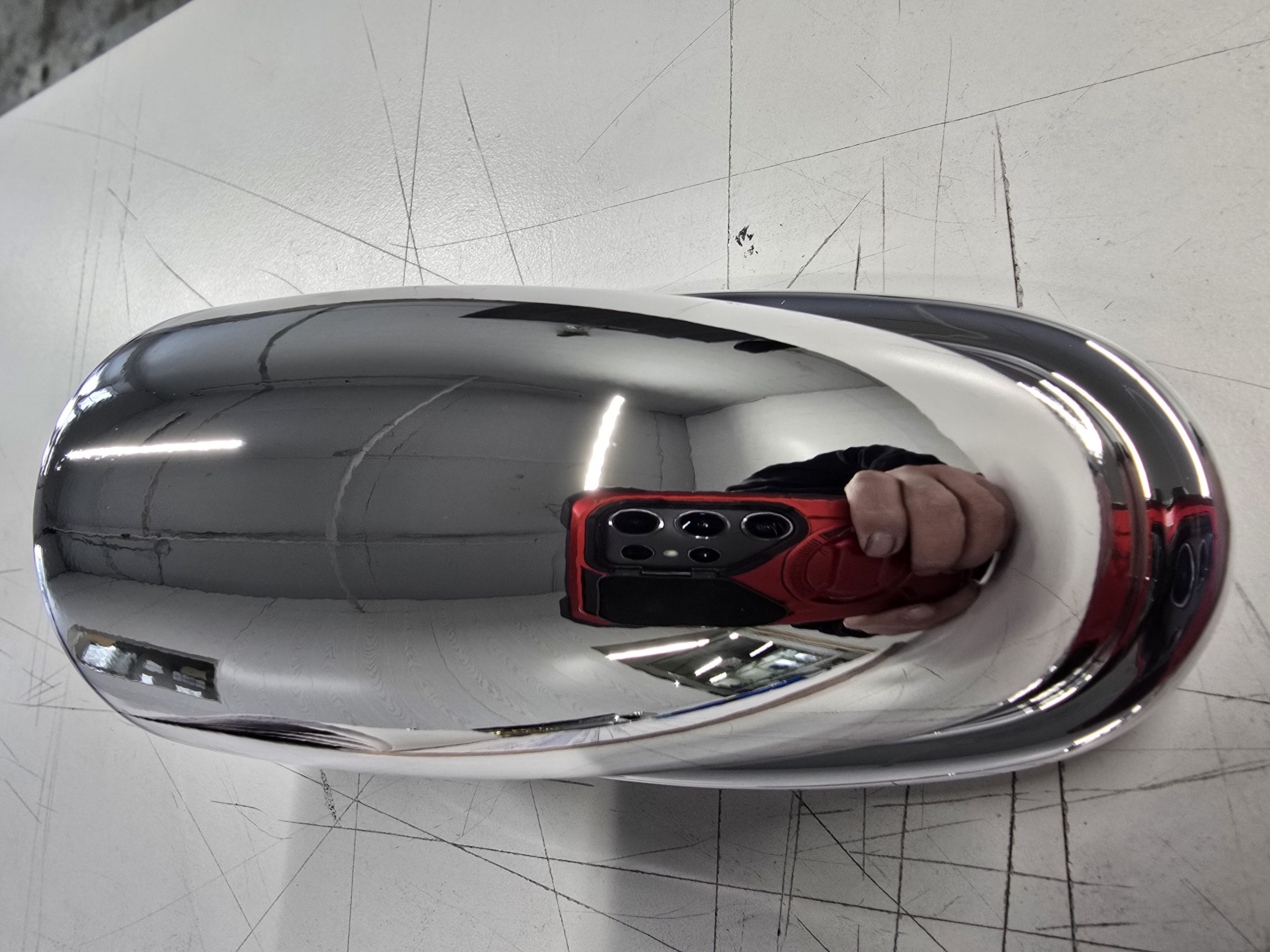 Chez HP Polissage de Métaux, nous maîtrisons une technologie de peinture au chrome, un procédé révolutionnaire permettant d’obtenir un effet miroir métallique sur une grande variété de matériaux — même les surfaces poreuses comme le plastique, le bois, le plâtre, la mousse ou l’uréthane.