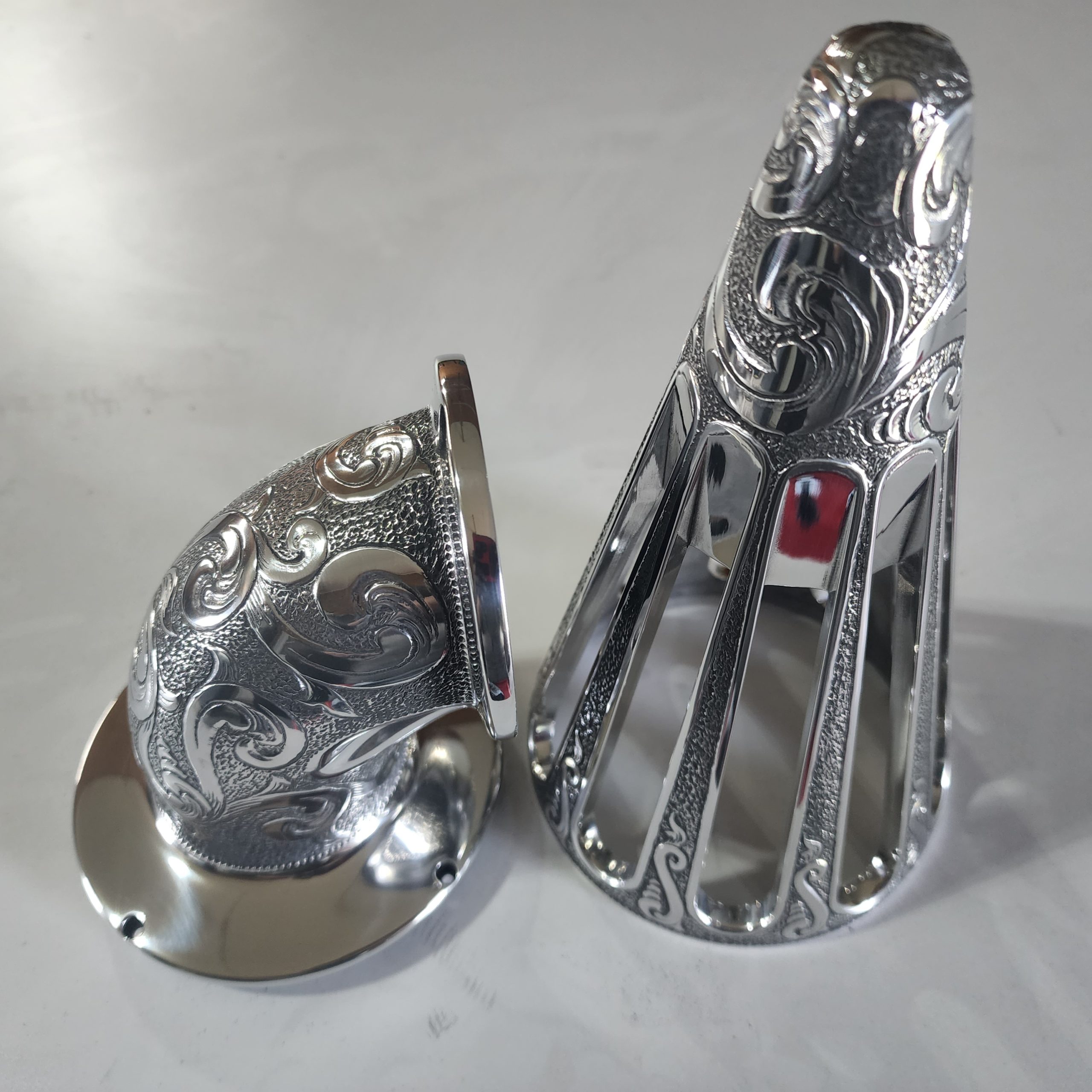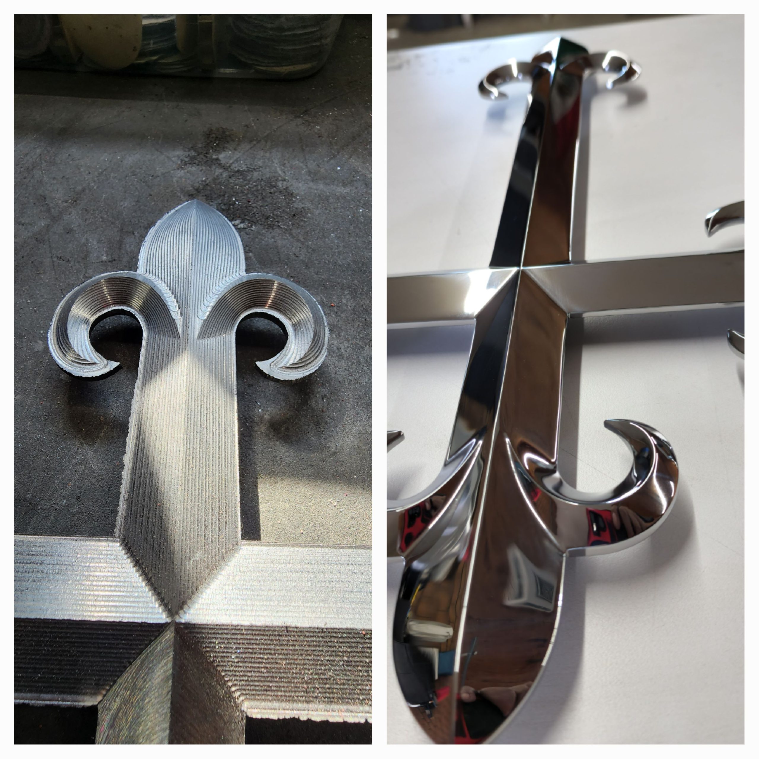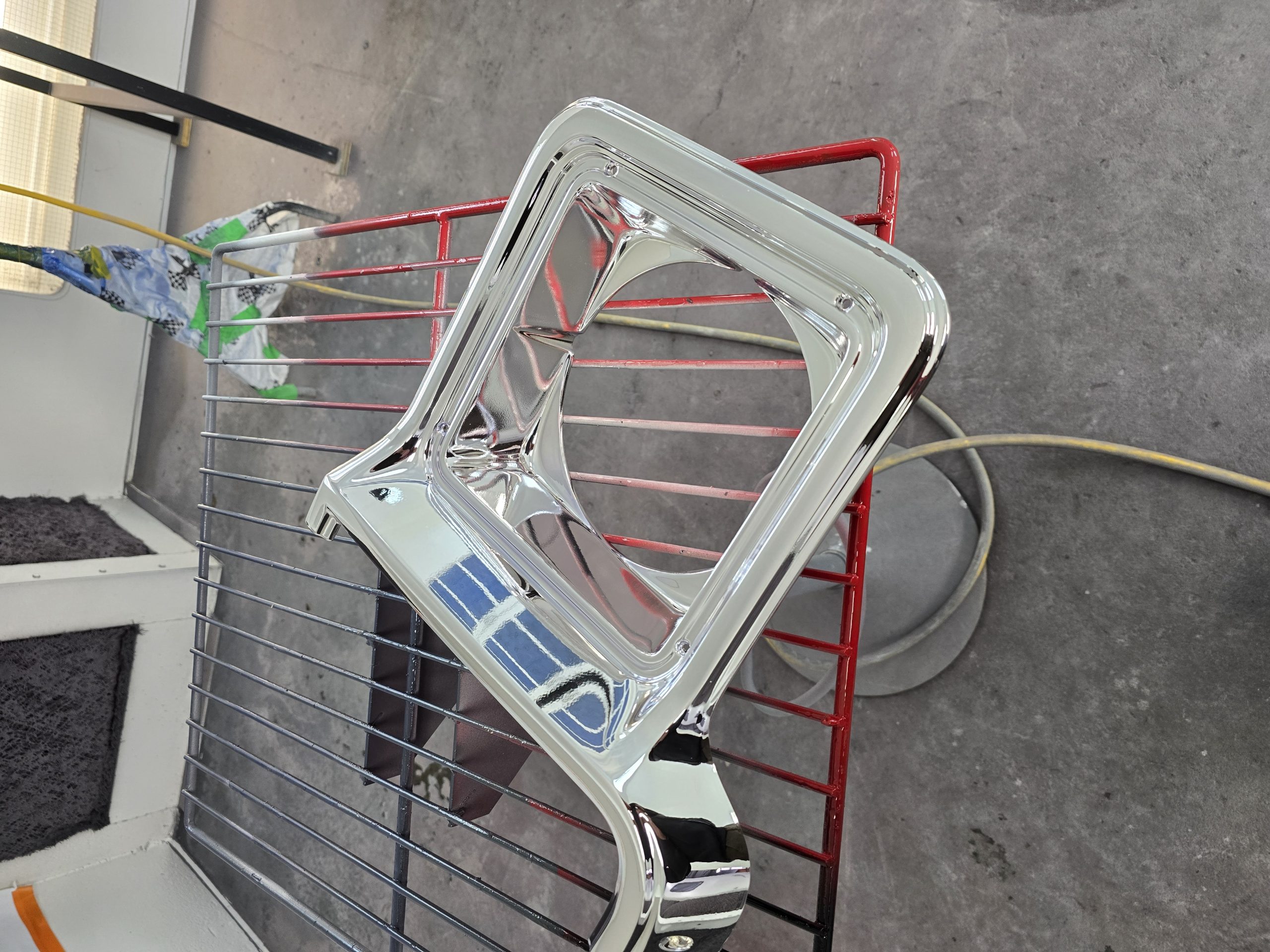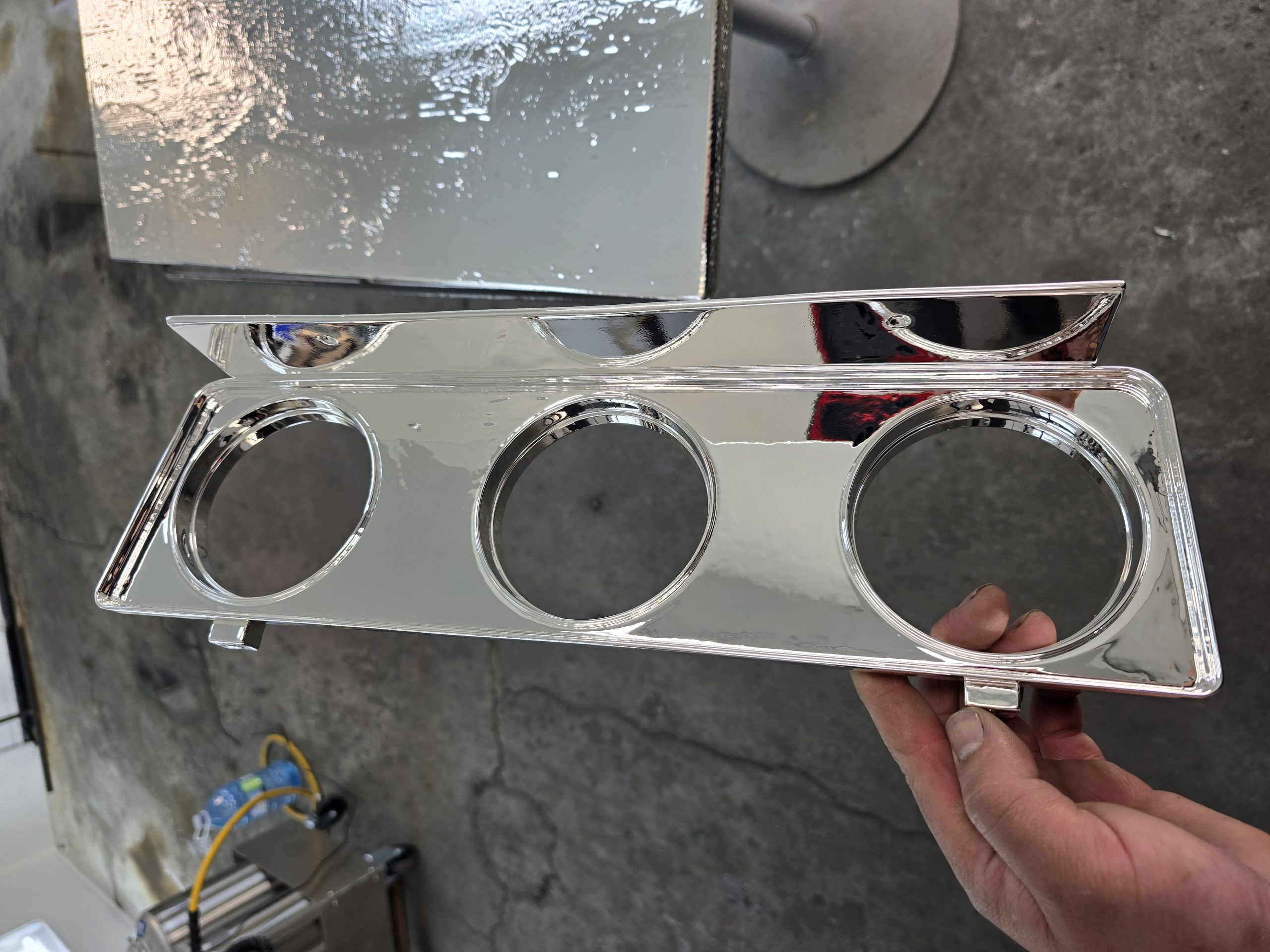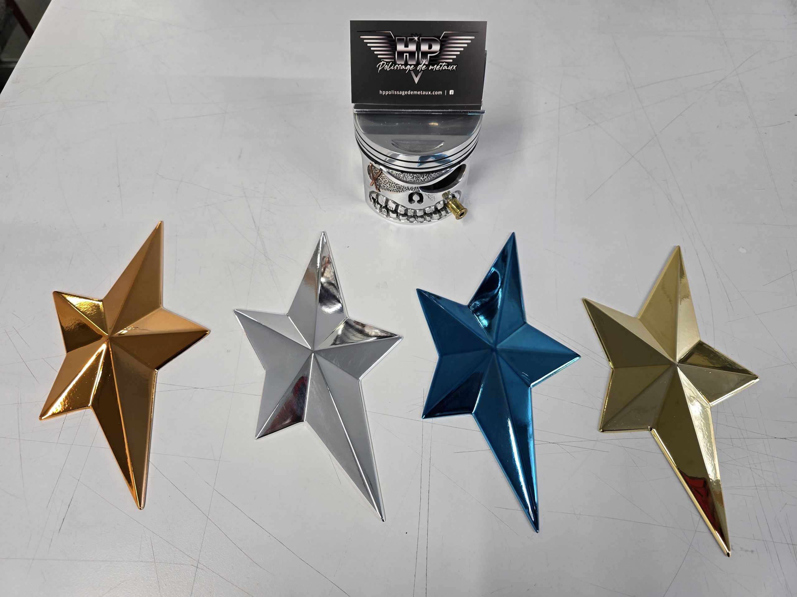 Chez HP Polissage de Métaux, nous maîtrisons une technologie de peinture au chrome, un procédé révolutionnaire permettant d’obtenir un effet miroir métallique sur une grande variété de matériaux — même les surfaces poreuses comme le plastique, le bois, le plâtre, la mousse ou l’uréthane.